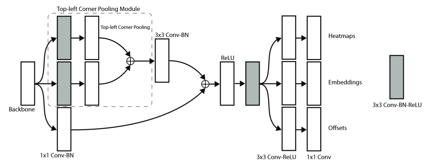 Top-left corners和Bottom-right corners- 经过backbone之后需要各自再通过一个
