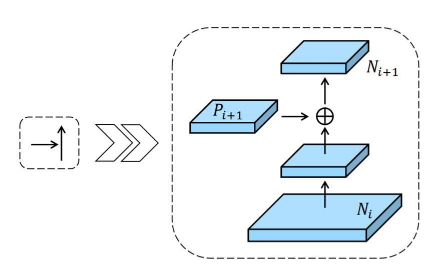 - 此外还在自顶向下模块和自底向上模块间各添加了一个跨越多层的