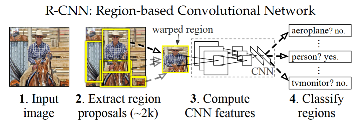 - 候选框生成: 一张图像采用选择性搜索方法生成1K~2K个候选区域
